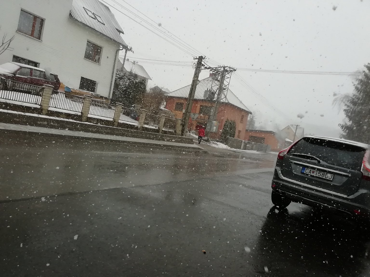 -0,6°C, Silné sněženi, Sníh: 5 cm. Sněhu rychle přibyva!