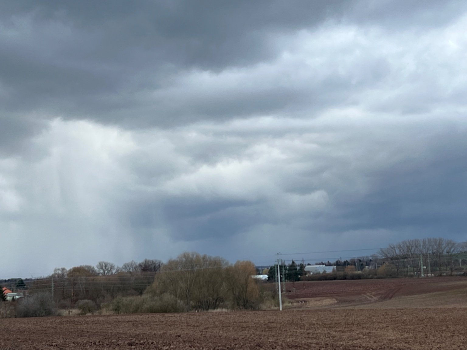 Shelf cloud před intenzivní přeháňkou