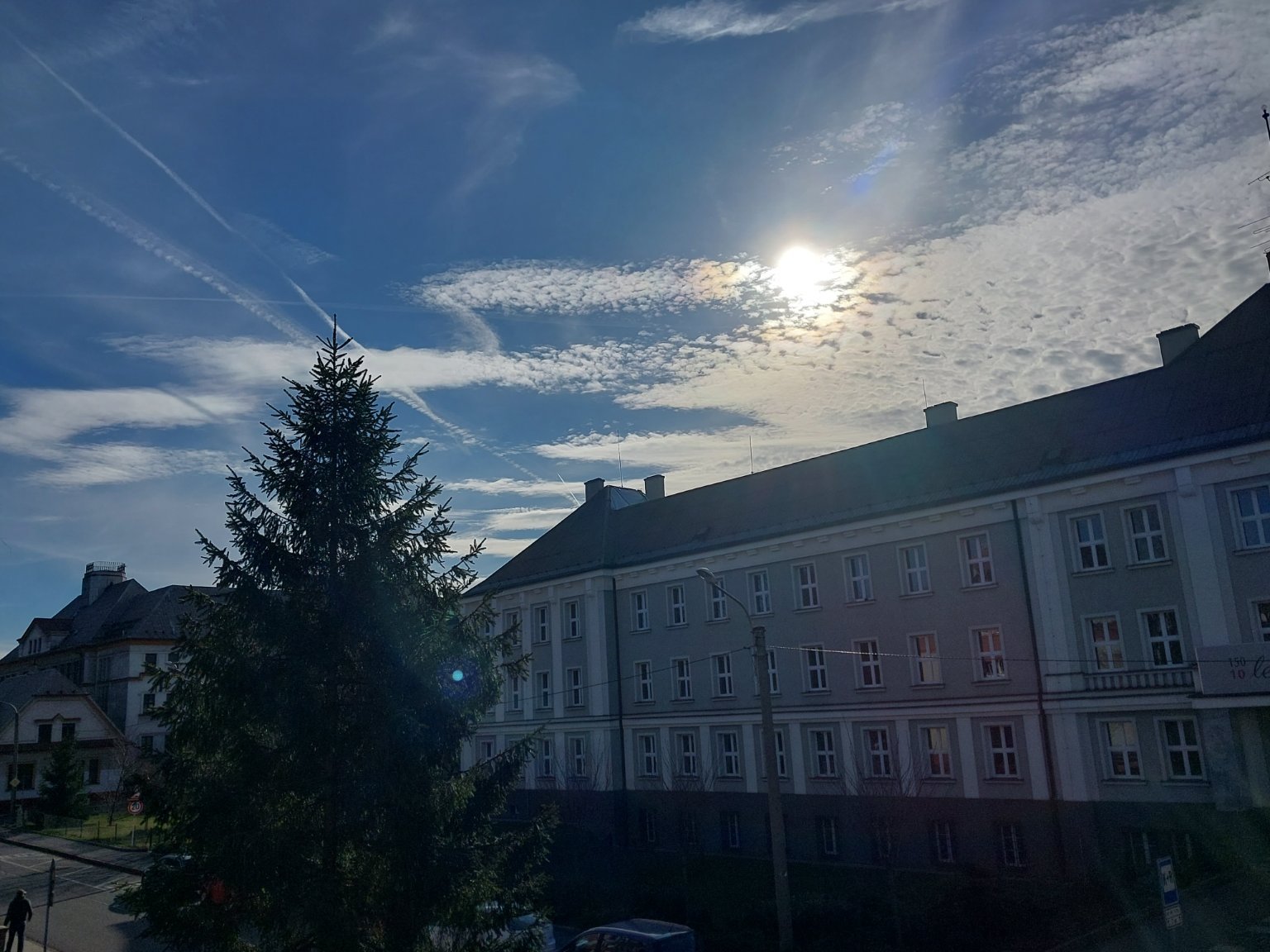 Skoro jasno až polojasno, vysoká oblačnost hodně zeslabila. Vítr 1 m/s JJV. Vlhkost 46%