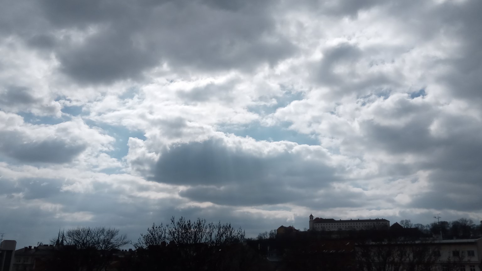 -°C, Zataženo až oblačno, Zanedbatelna mlha, Sníh: 0 cm. Výhled z Piastovské věže.