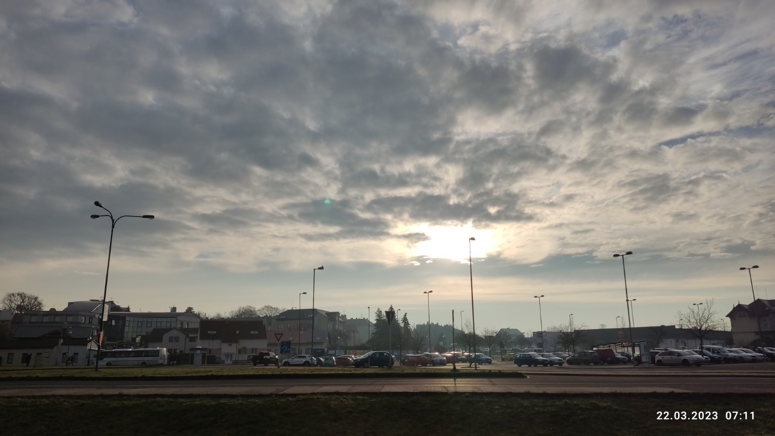 Oblačno až polojasno, vysoká oblačnost. Bezvětří. Vlhkost 93%. Min T dnes 5,9°C