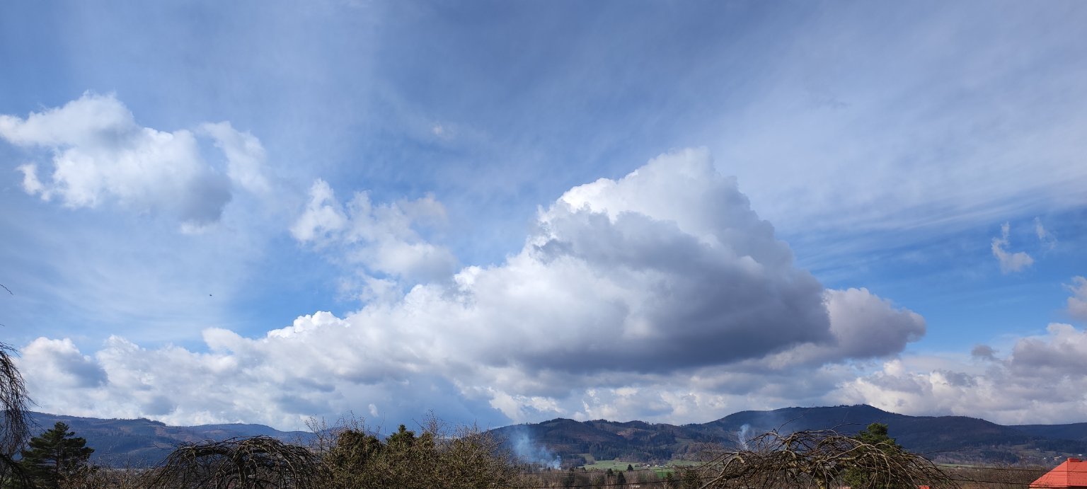 13,2°C, Oblačno, Sníh: 0 cm. Je krásné ráno.