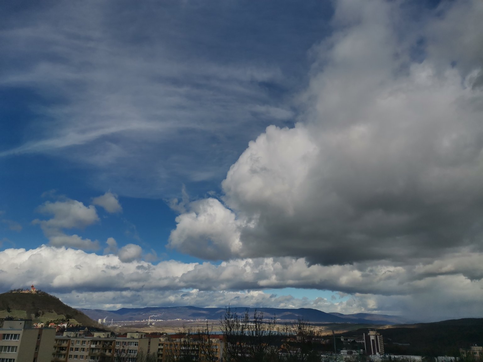 Oblačno až skoro zamračené, slabá dažďová prehánka