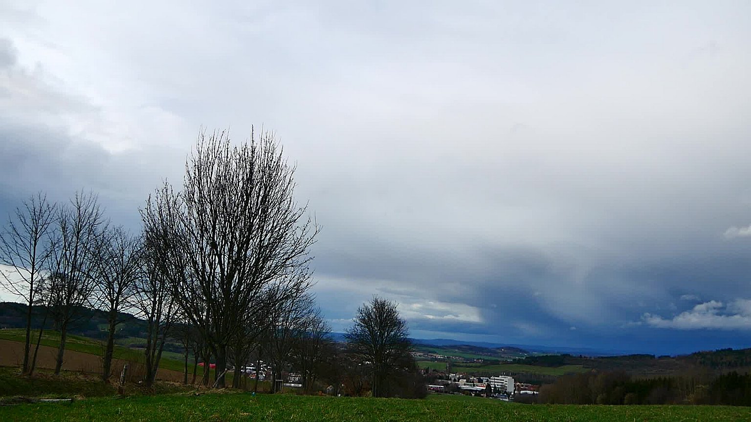 Od západu se blíží silné přeháňky. Vítr vane čerstvý s nárazy.