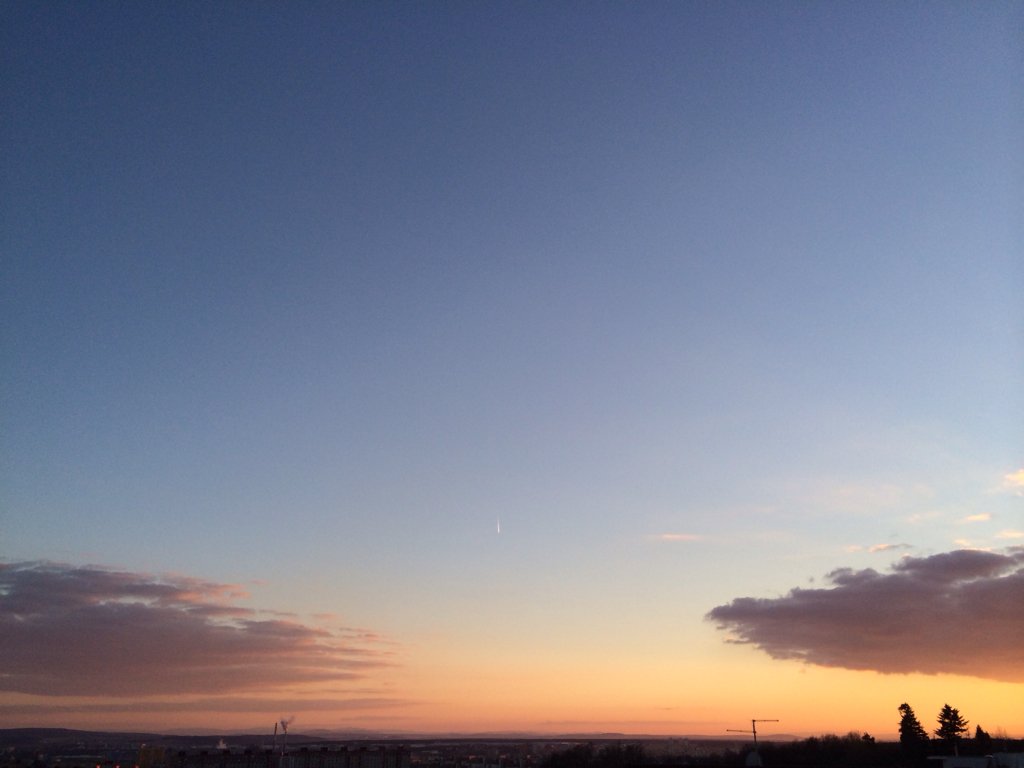 Vánek,tlak 1022hPa,vlhkost 52%.dnešní západ Slunce.