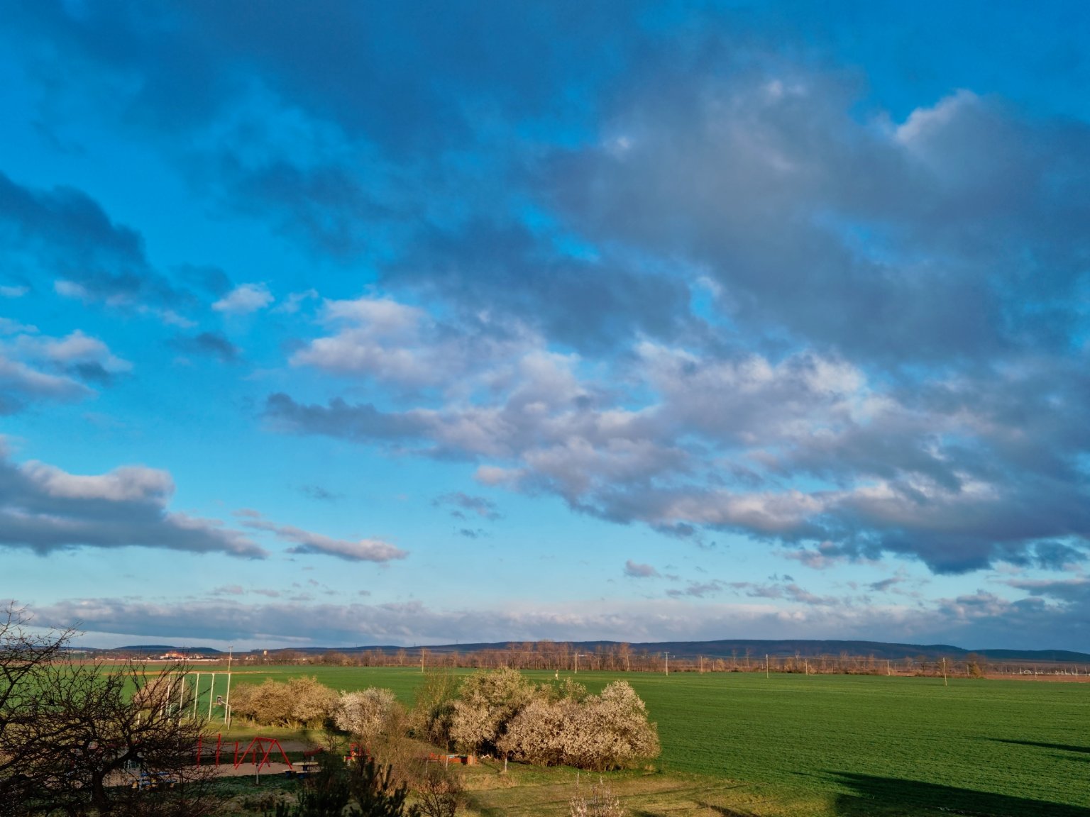 Oblačno, sněhové přeháňky, čerstvý SZ vítr, tlak 1018 hPa.