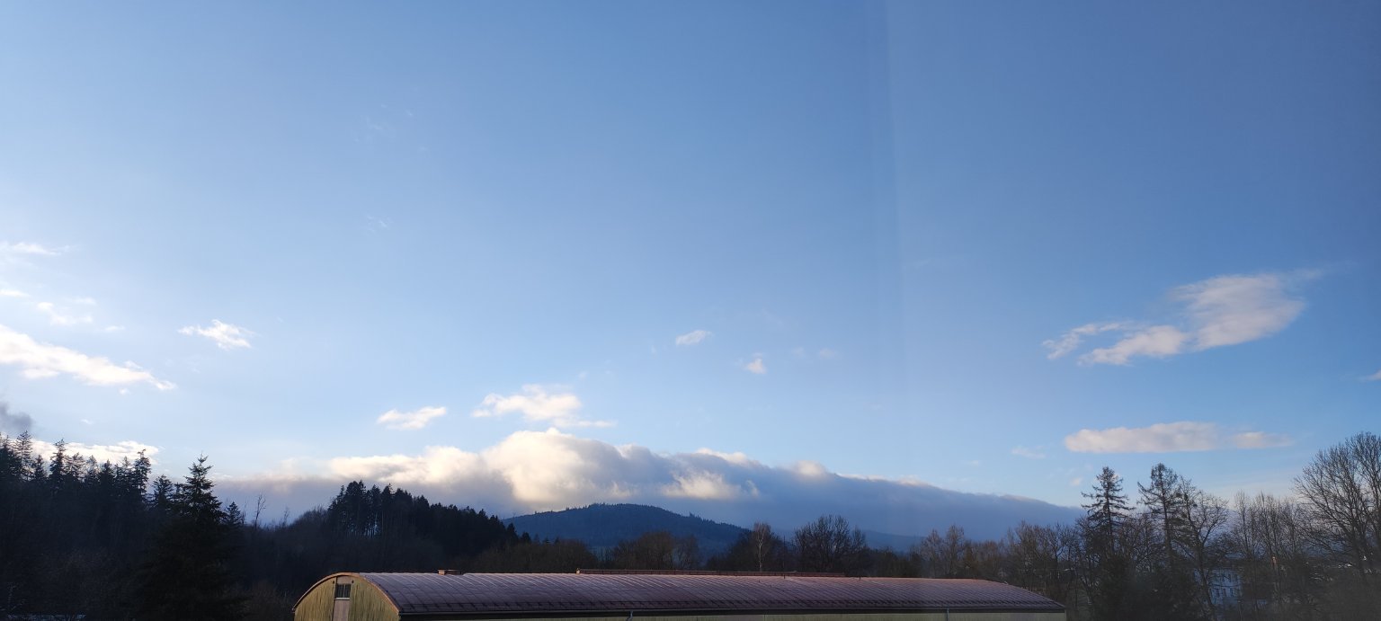 Oblačno, mlha, klidno, tlak 1008 hPa.