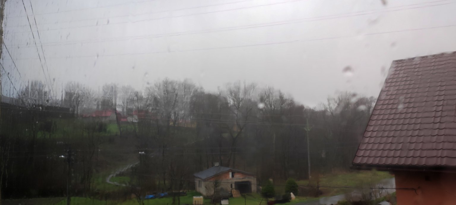 Zamračené, slabý dážď