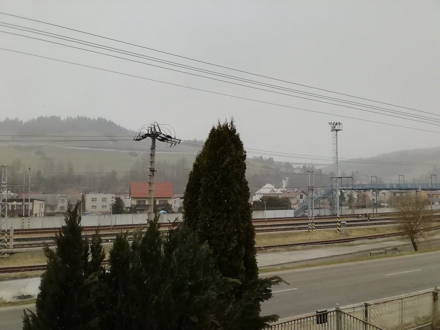 2,3°C, Slabé až velmi slabé sněženi. Sněženi zesiluje, jsou to spiš krupky.