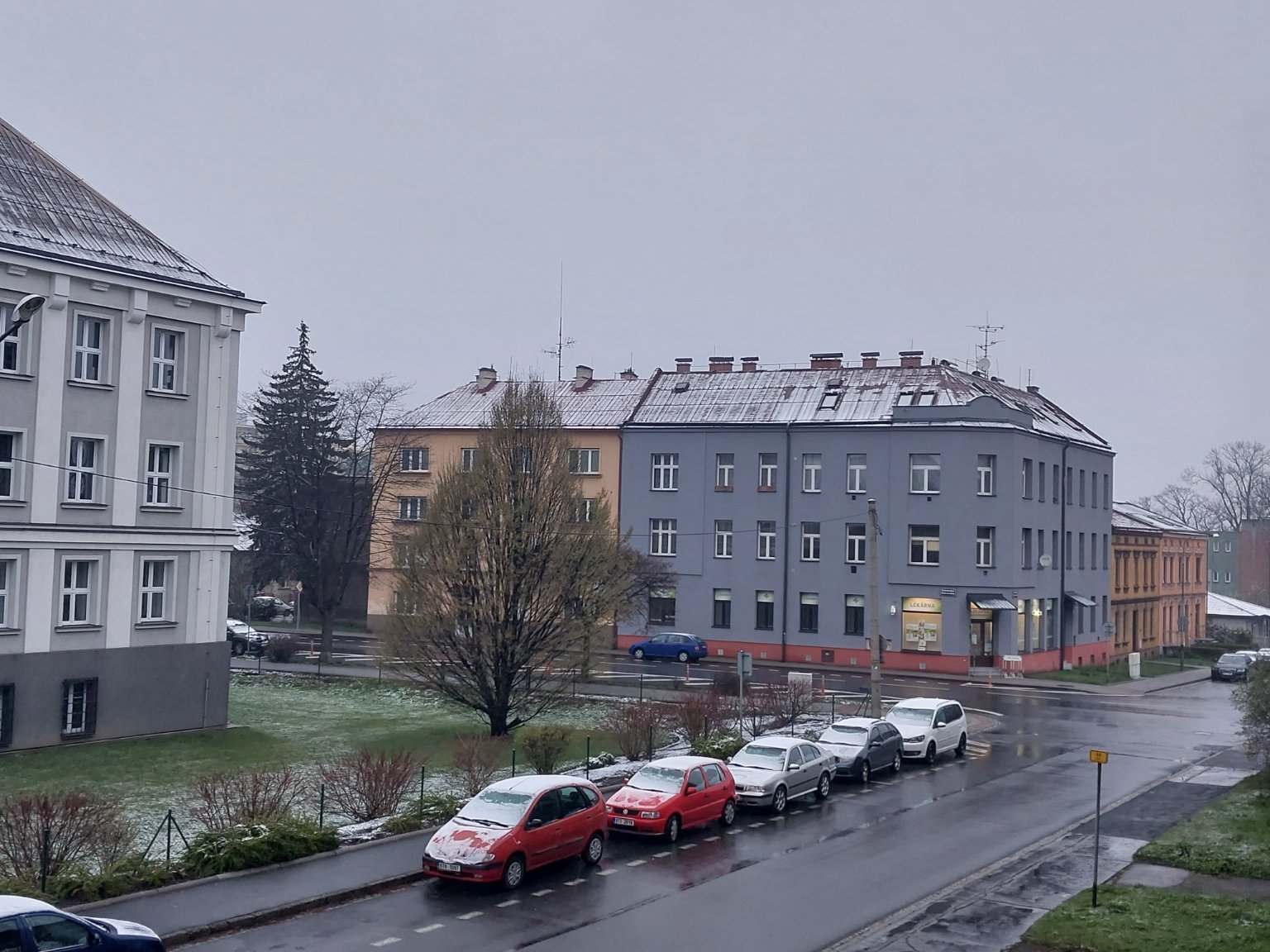 -0,3°C, Slabé sněženi, Sníh: 1,5 cm. Máme dokonce i sněhovou pokrývku...