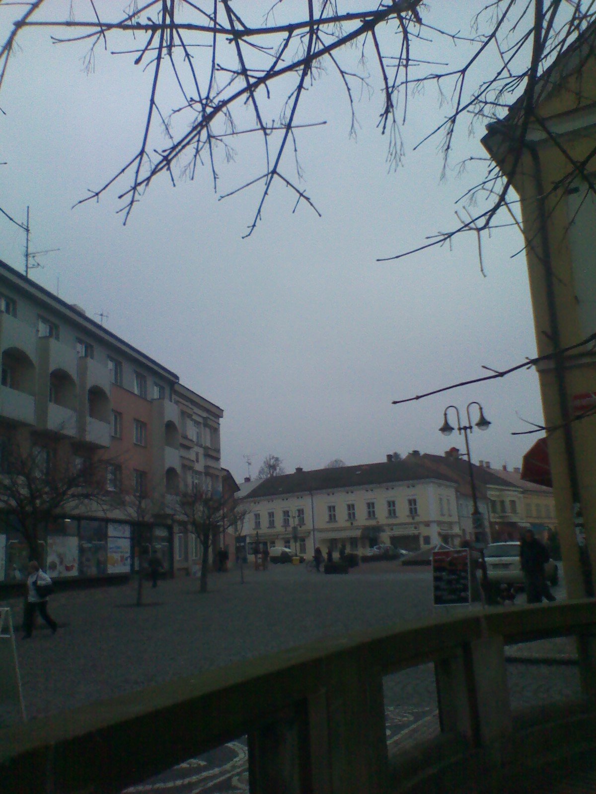 Po noční sněžení se kolem města drží poprašek až 1cm sněhu.Občas ještě padá slabý sníh s deštěm.