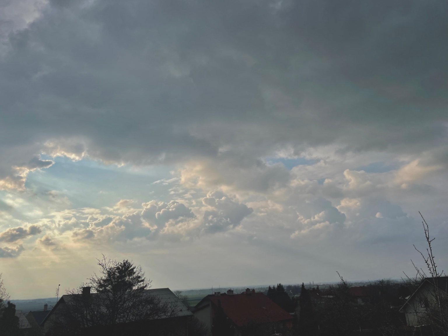 Oblačno až polojasno, teplo. Vítr 1 m/s SV. Vlhkost 48%. Max T dnes 15,0°C