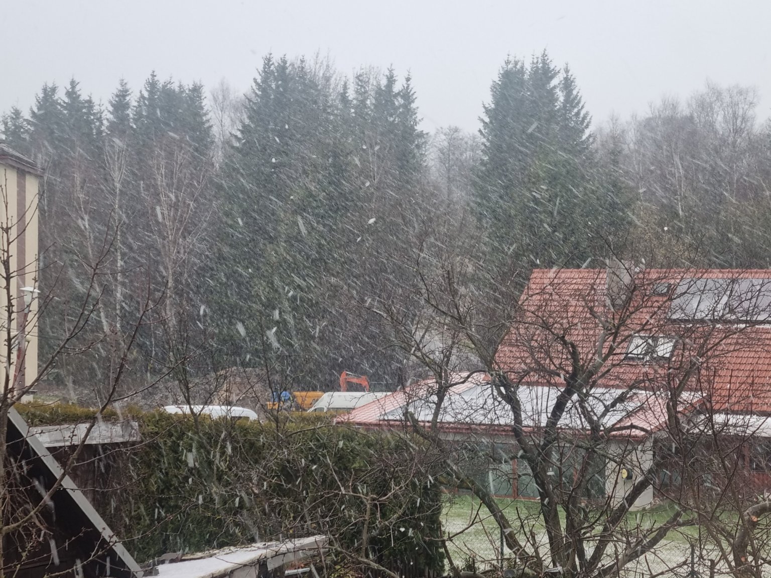 Krupobití, chvilka a je e bílo. Do 1cm
