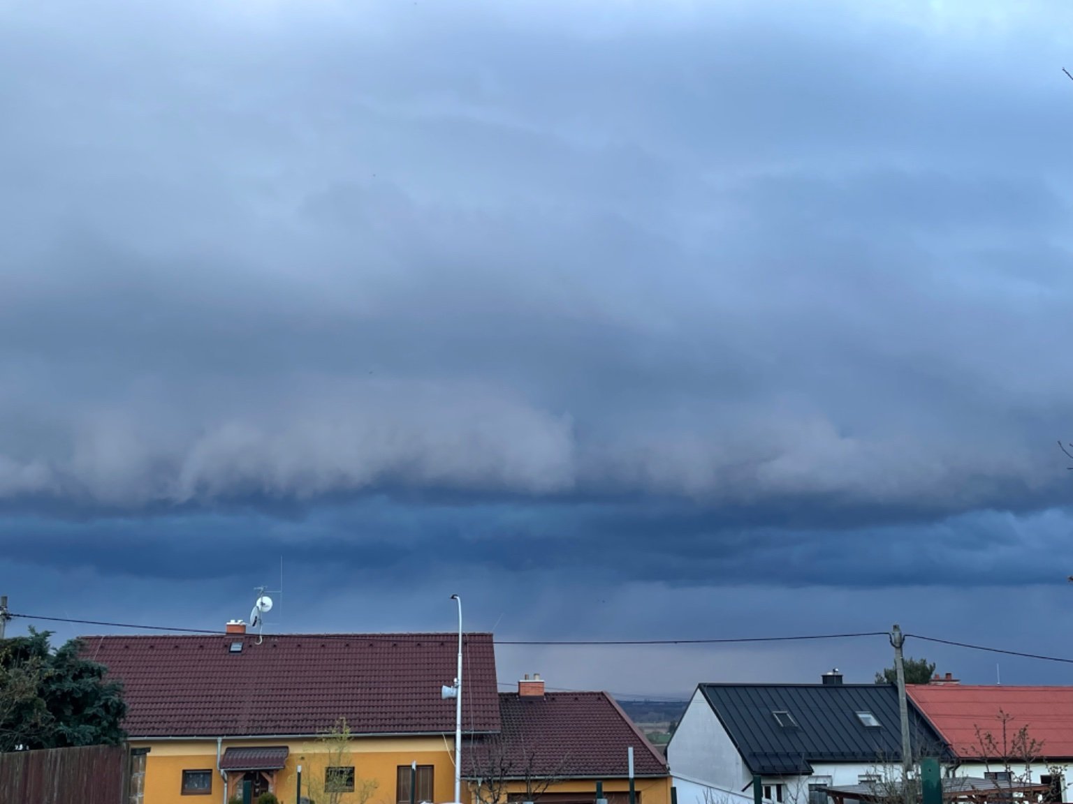 Od západu se blíží šílenější přeháňka a možná i bouřka s hezkým shelf cloudem. Vane slabý západní vítr, tlak: 1011hPa.
