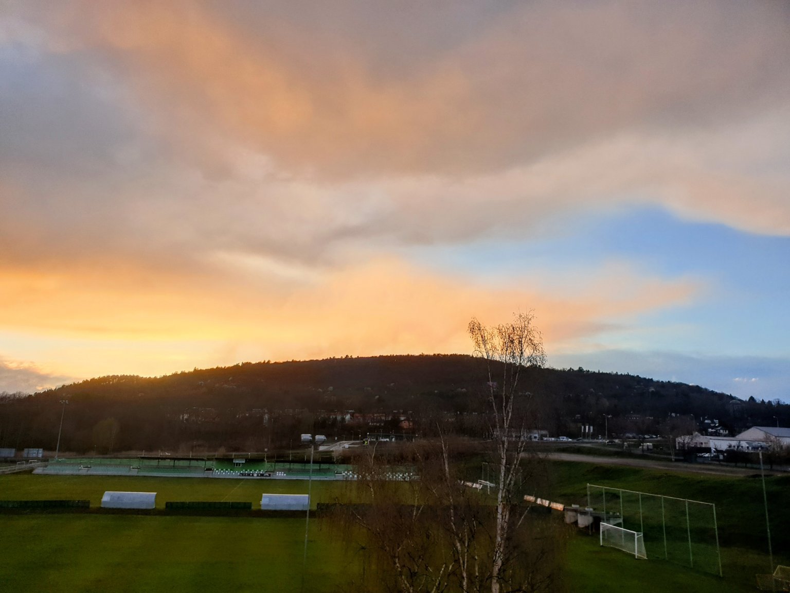 Jasno, nad severním obzorem pár mraků,slabý vánek