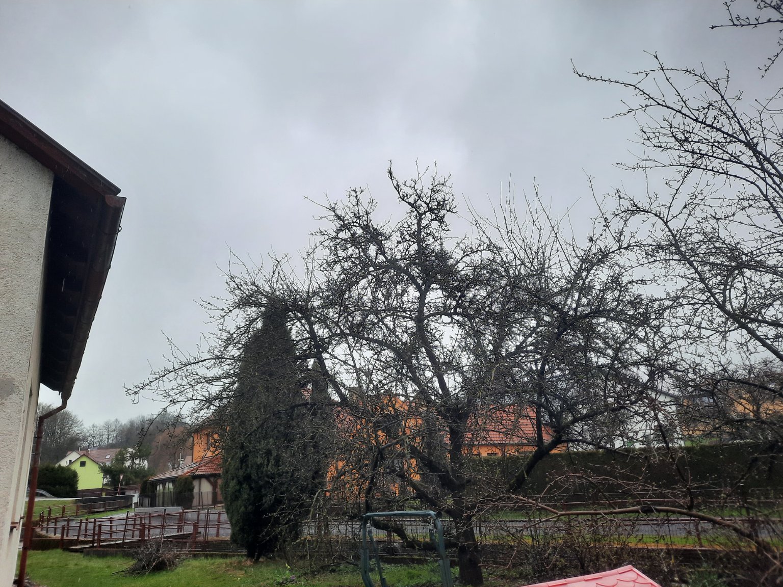 Od 11.hod.přešel sníh v déšť a prší vkusem,chvilku víc chvilku méně a chvíli dost.rozfoukal se vítr