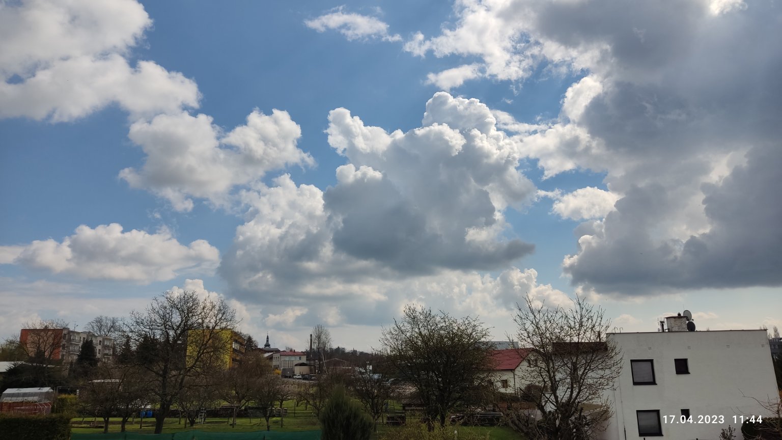 Tlak 1023.60 hPa / vlhkost 68 % / S vítr 6.5/9.4 km/h / UV 6 / solární záření 669.40 watts/m2.