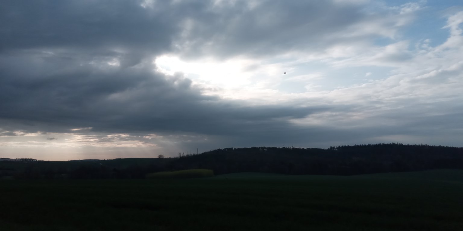 Skoro jasno, teplota jde rychle nahoru. Většinou bezvětří, vlhkost 74%. Min T dnes 8,5°C