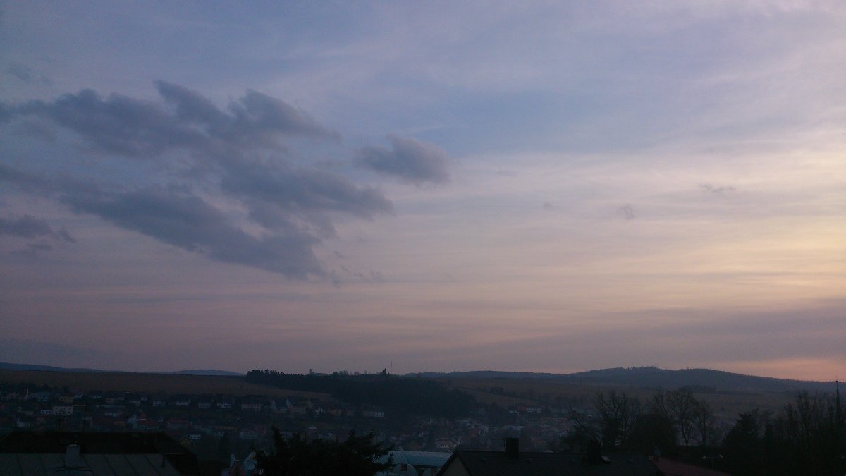 Drobně začíná pršet, tlak 998.1 hPa, vítr 1.7 m/s-JV, vlhkost 76%, rosný bod 4.4°C a pocitová teplota 8.4°C.