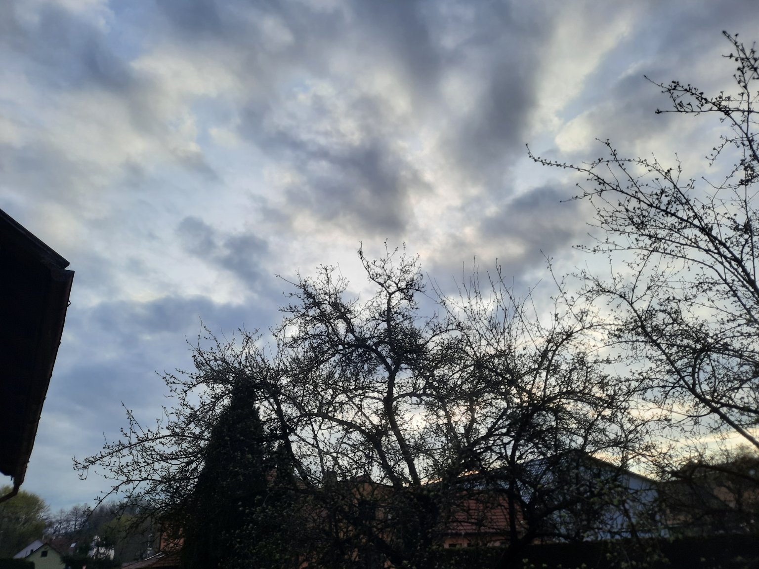 Oblačno až skoro zataženo, vítr 0,5 m/s JJV. Vlhkost 93%. Min T dnes 9,3°C