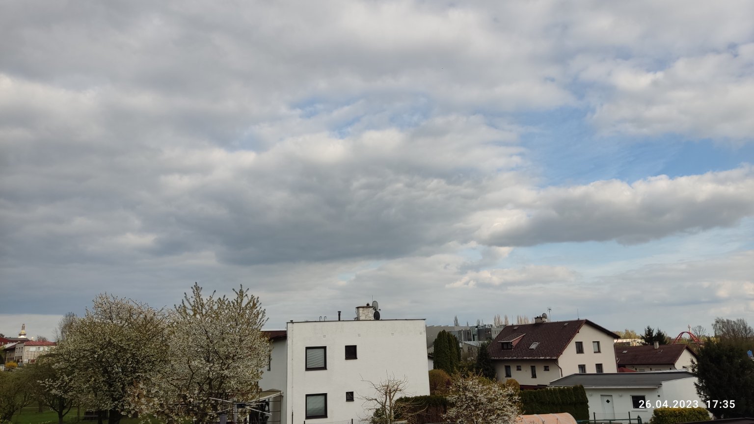 -°C, Zataženo až oblačno. Slunce hezky osvětluje přehaňku.