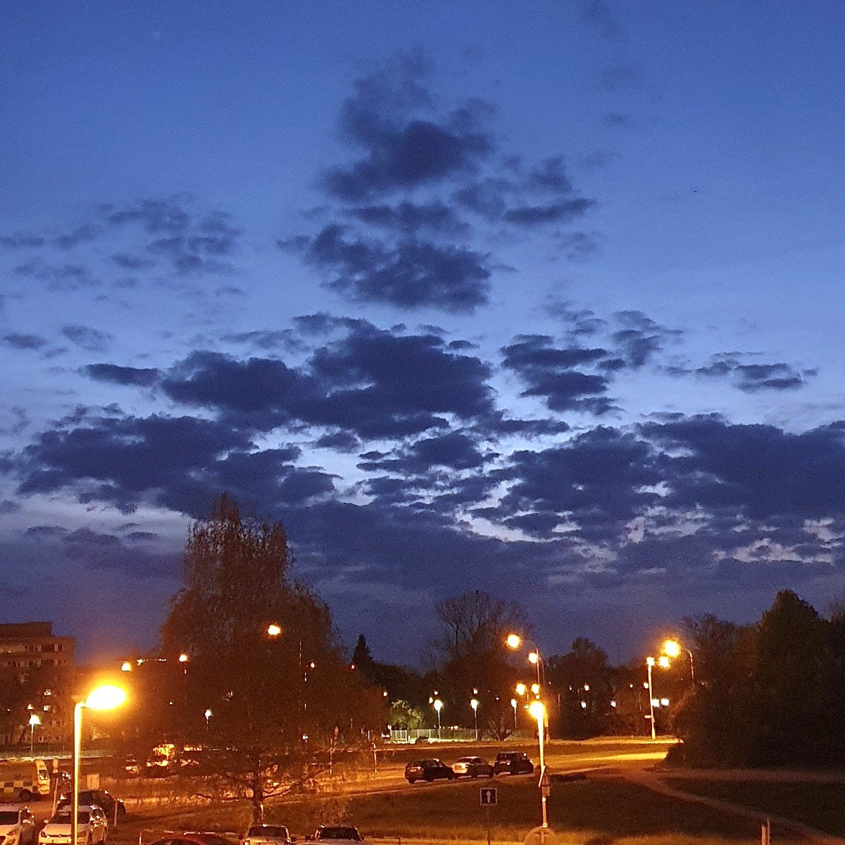 9,6°C, Zataženo. Mnohem tepleji, než včera. Dnes hlásí asi jen přehaňky, bouřky pouze na JZ...