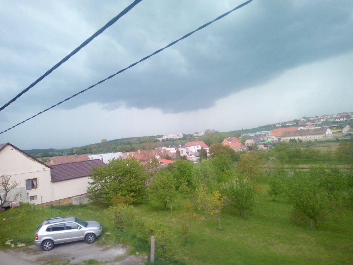 Vlhkost 54%, vítr slabý JZ, 2,7 m/s, v nárazech 5,8 m/s. Po polední frontě 1,7 mm srážek. Nějaká přeháňka odpo ještě může neco přidat.
