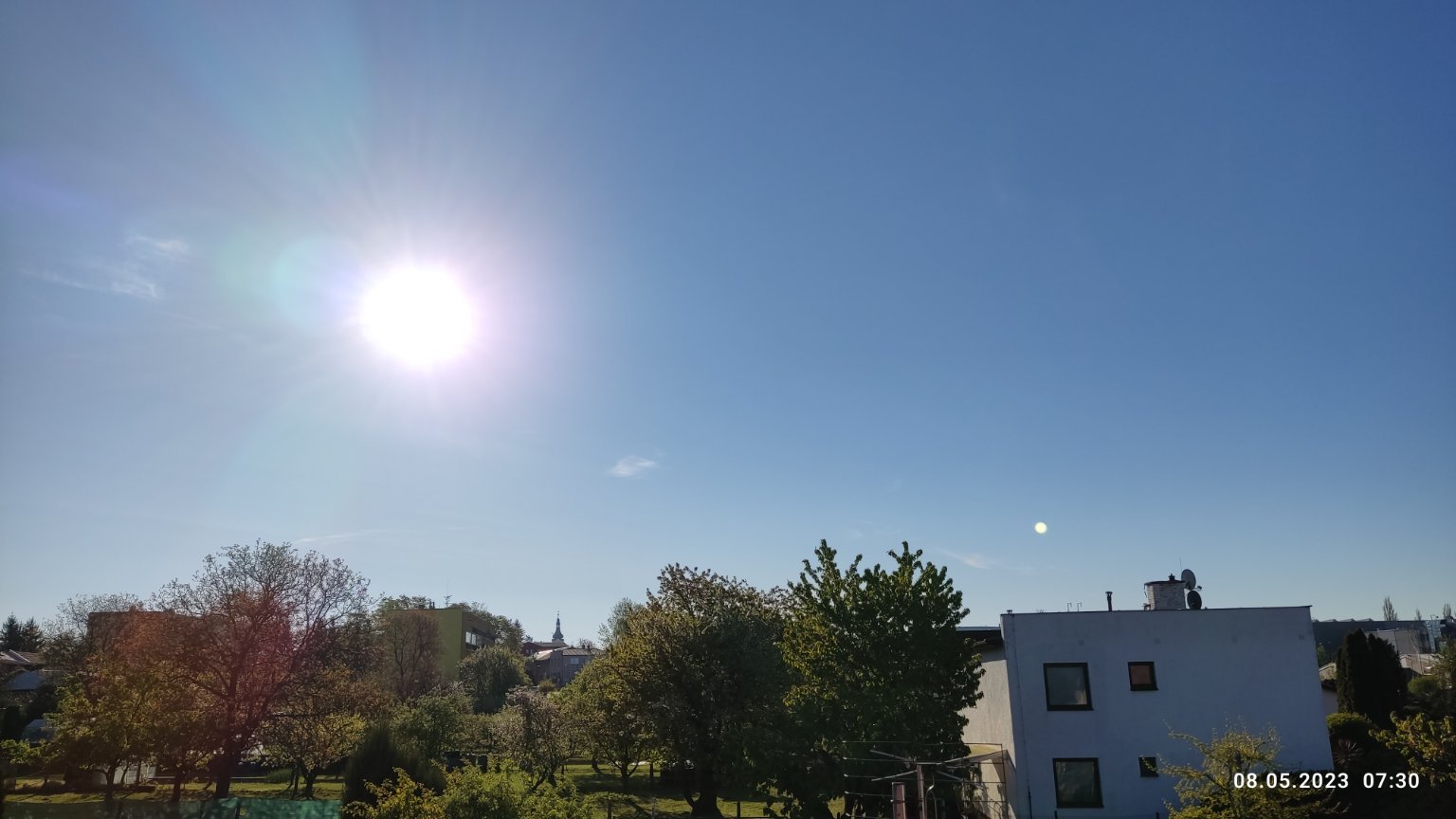 Aktuálně: Skoro jasno. Teplota: 8.1°C, Vlhkost: 71%, Tlak: 1027.8 hPa (stoupá).