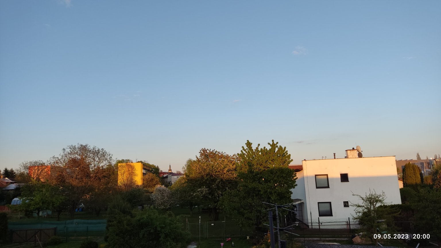 Skoro jasno, slabě začíná přibývat vysoká oblačnost od Z. Vítr 2,5 m/s V. Vlhkost 53%. Max T dnes 19,6°C