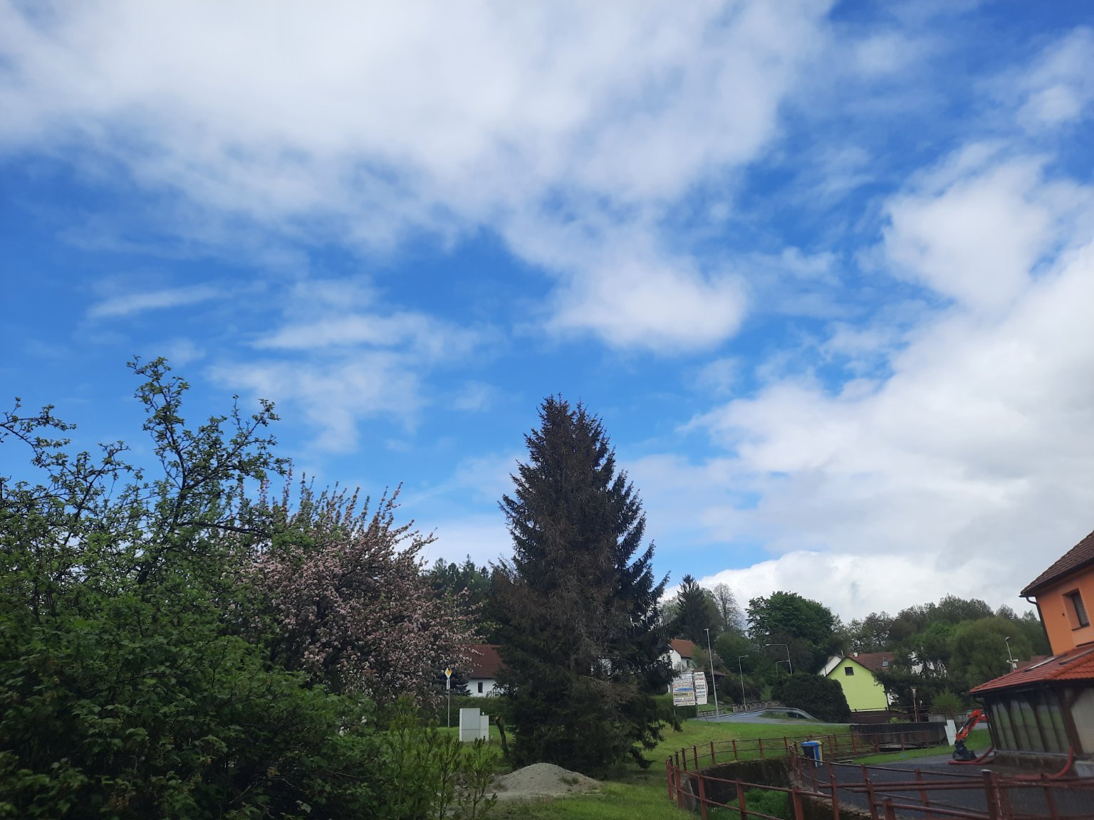 Skoro zataženo, včera napršelo 10,2 mm, dnes zatím 4,6 mm. Severozápadní vítr 20 km/h, vlhkost 86 %.