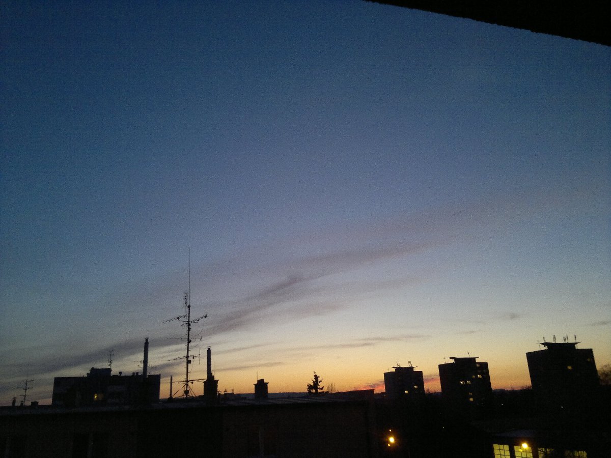 foto z 2014 03 10 v 18:21 zachytilo červánky, teplota byla 7°, nyní je zase nižší - klesá