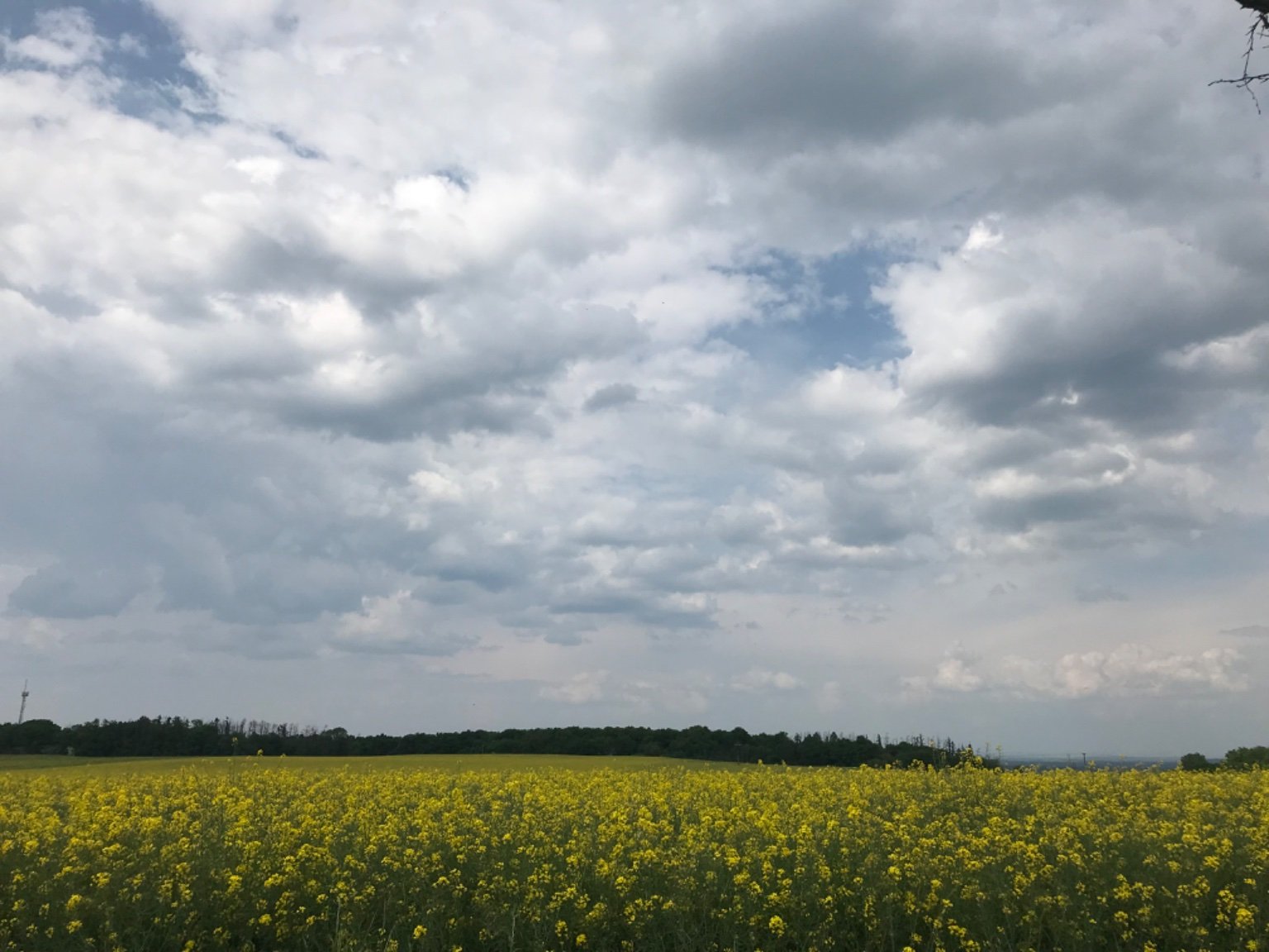 25°C, Polojasno až oblačno. Teploměr od auta ukazuje krásných 25°C.