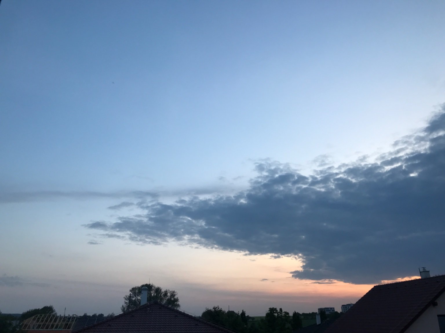 Dnes byl letos poprvé skutečně teplý den. I když letní hodnota nakonec nepadla, maximum bylo 24,9°C. V okolí se vyskytly i poměrně silné bouřky, tady však nepršelo. Vane slabý severovýchodní vítr, tlak: 1015hPa.