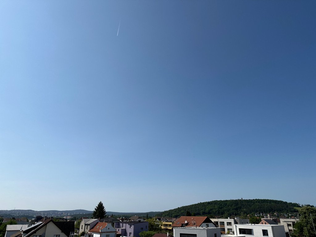 19,9°C, Skoro jasno až jasno. Je fajně, jen ten zákal na obloze to kazí... Jo bylo i přes 20°C.