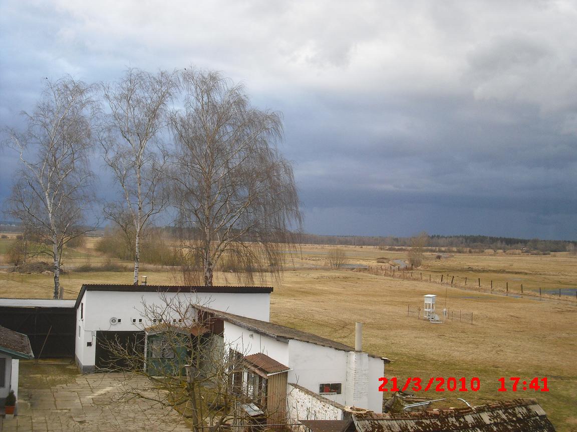 Tlak vzduchu 1021 hPa - zpočátku vzestup, nyní setrvalý stav, Vlhkost vzduchu 84 % Rosný bod: 3,9 °C Dohlednost 15 km Směr větru: západní Rychlost větru: 10,5 km/h
