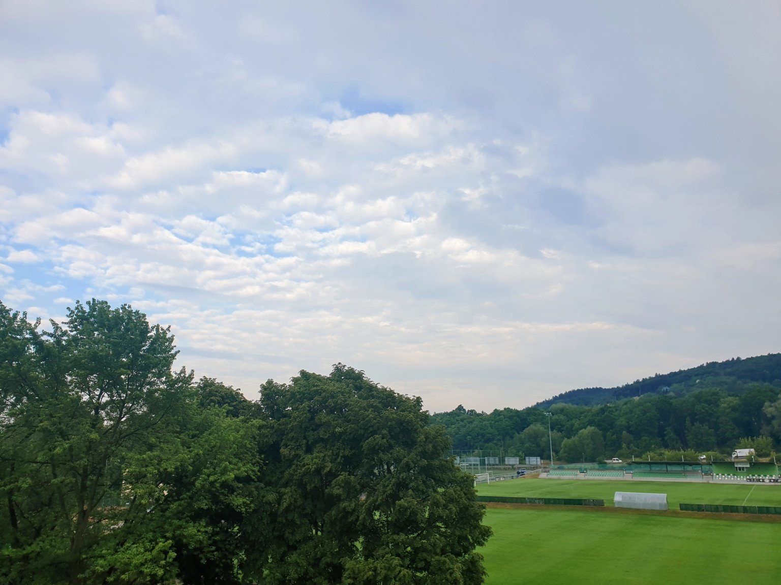 Je skoro zataženo a bezvětří.