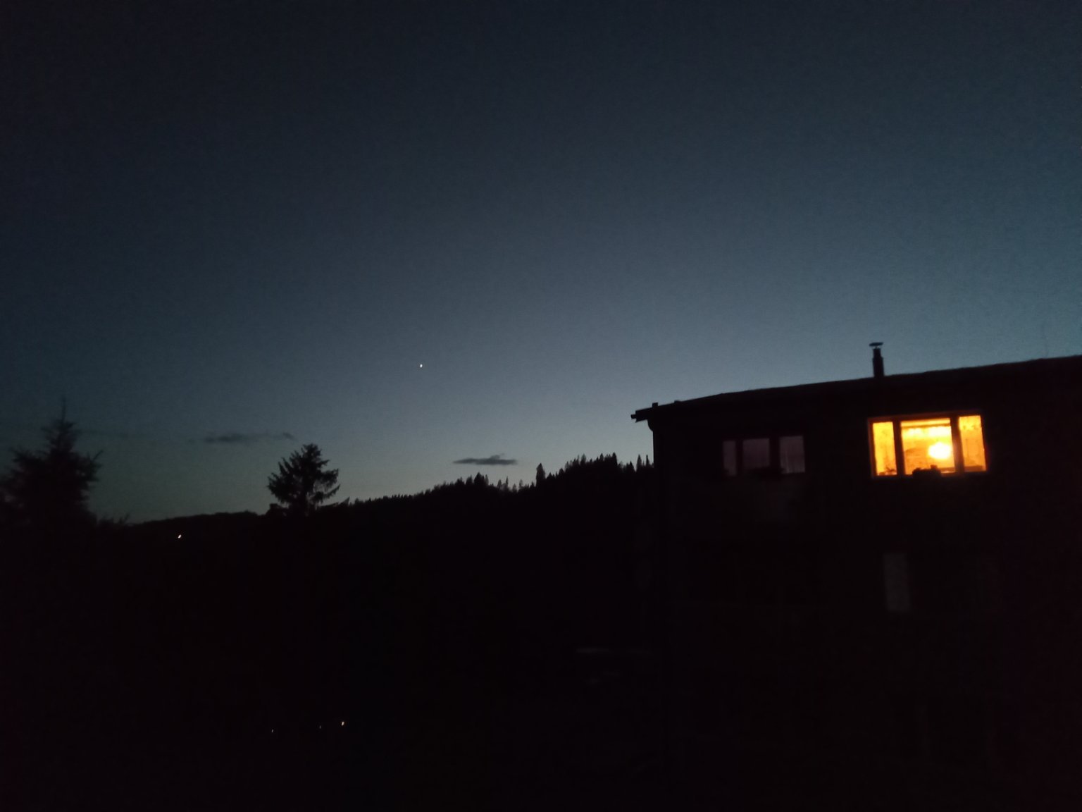 -°C, Jasno až skoro jasno. Už se rychle ztmiva...