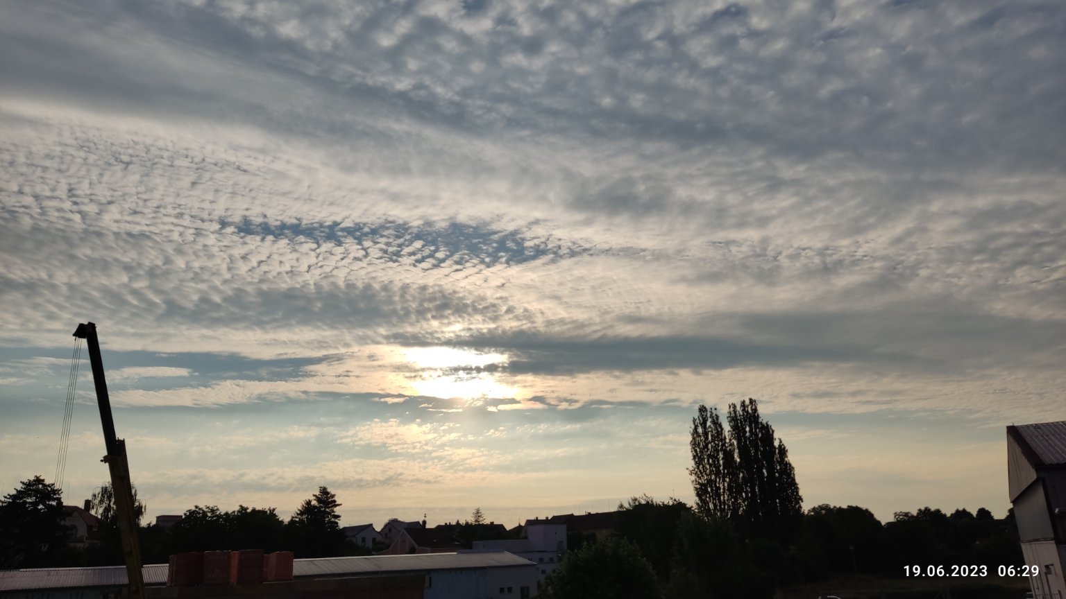 Většinou skoro zataženo, bezvětří. Vlhkost 83%. Min T dnes 15,1°C
