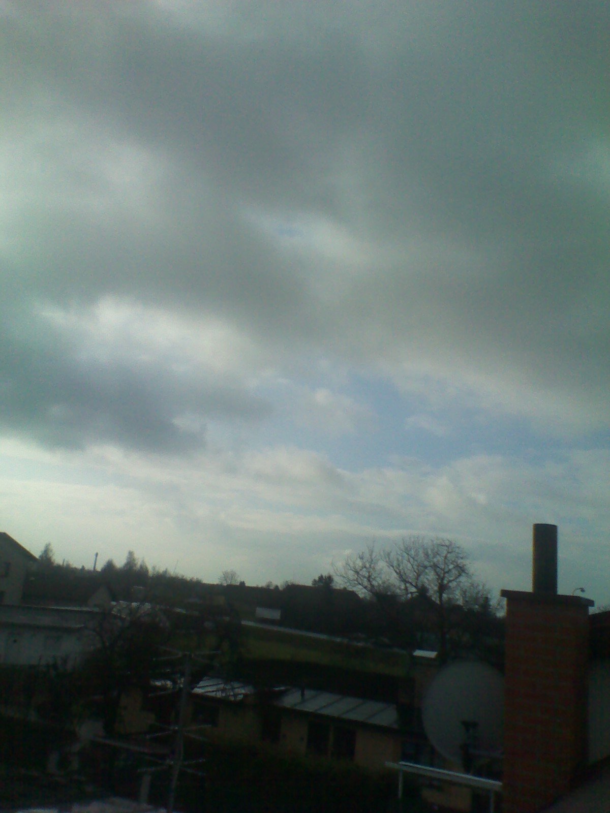 Občasné dešťové přeháňky,nyní oblačno,tlak 1015hPa,vlhkost 70%,žene se další přeháňka.