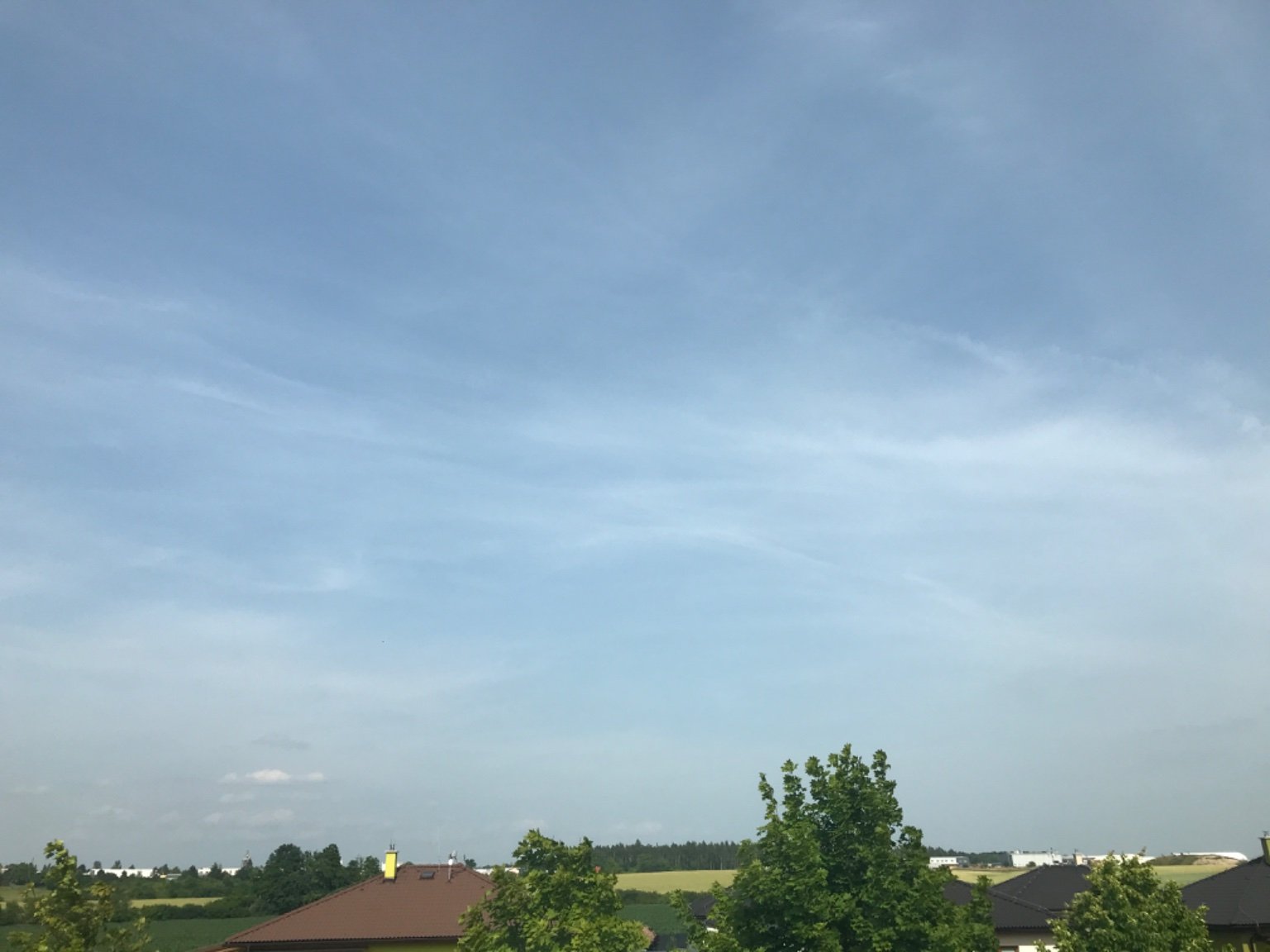 Polojasno, na obloze vysoká a střední oblačnost. Vlhkost 47%, vánek. Tropický den, maximum tu dnes bylo 31,2°C.