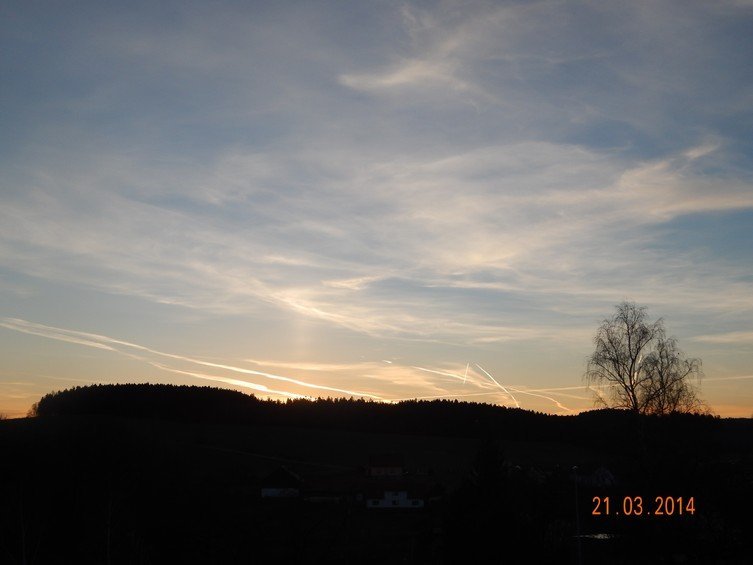 Krásné jarní ráno s úžasným pohledem na oblohu.