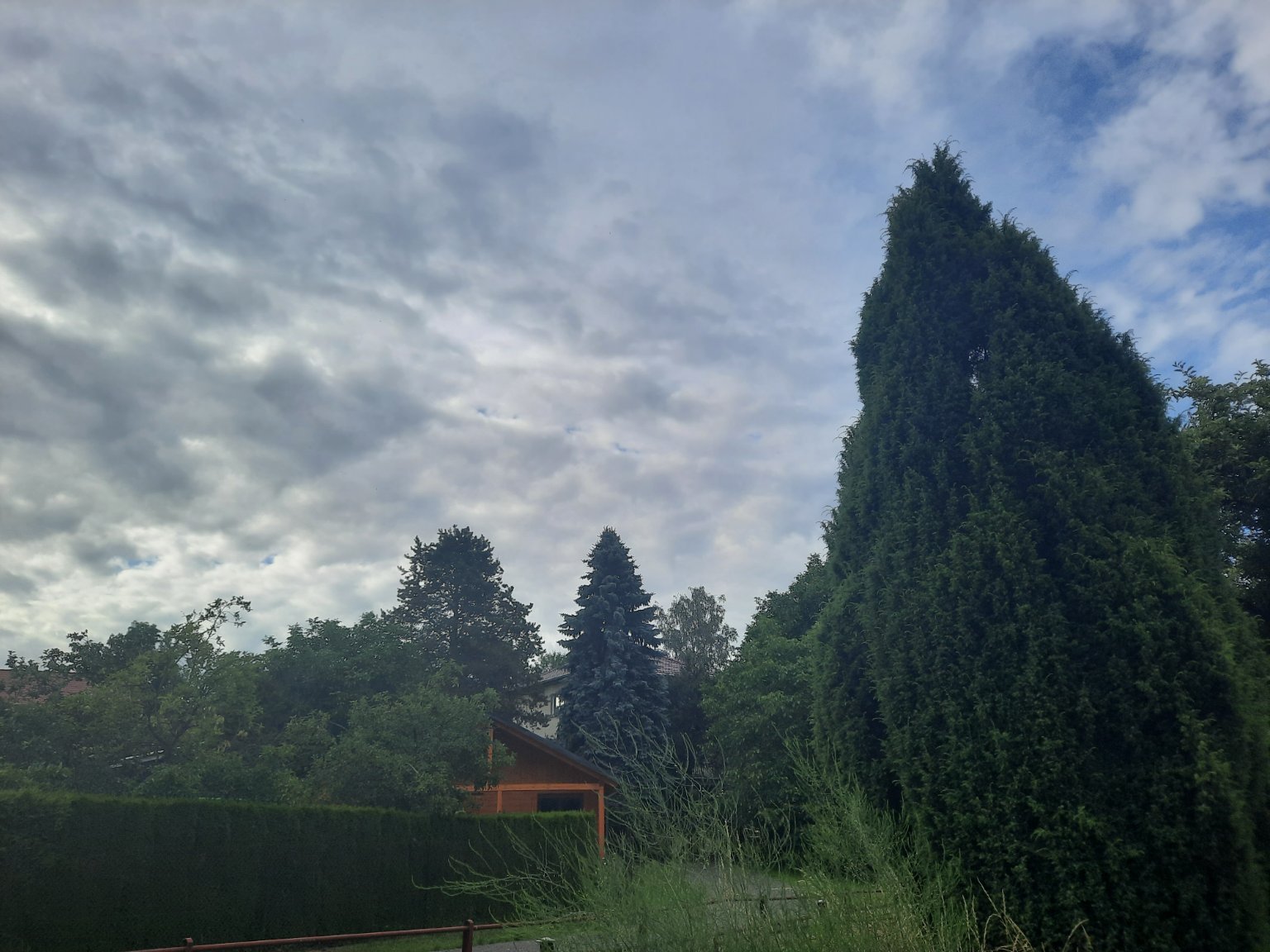 Klidno nebo jen slabý vítr, přibývání oblačnosti od jihu. Časně ráno bylo jasno a teplota byla 15,5°C.