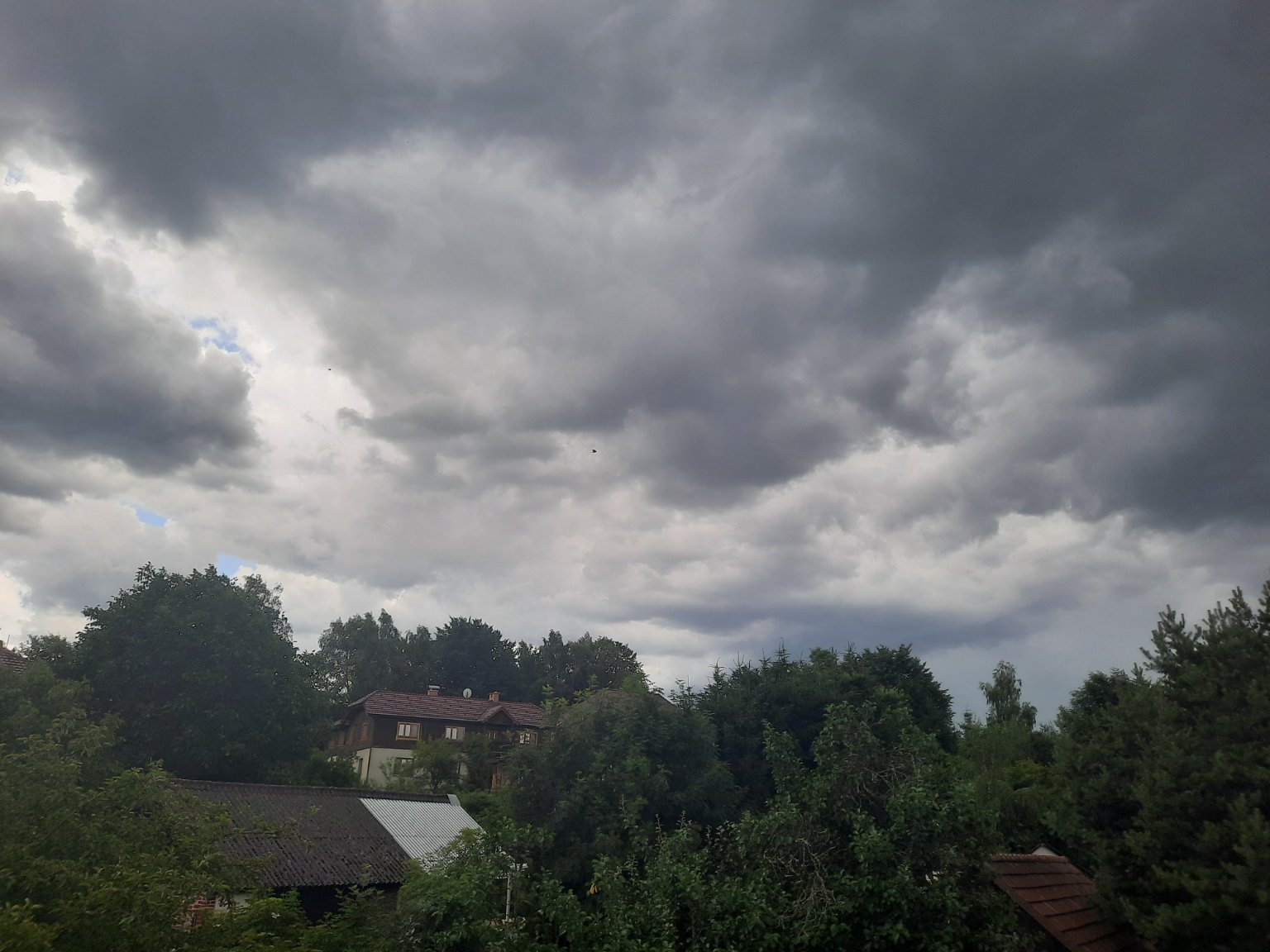 Aktuálně převažuje většinou oblačno až skoro zataženo, slabá dešťová přeháňka+bouřka a fouká většinou slabý přechodně až mírný vítr