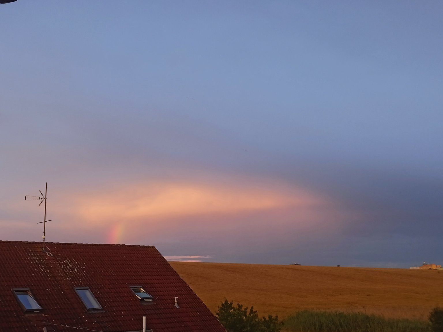 16,8°C, Oblačno. Cumulonimbus zaři tolik, že to vypadá jako při východu slunce.