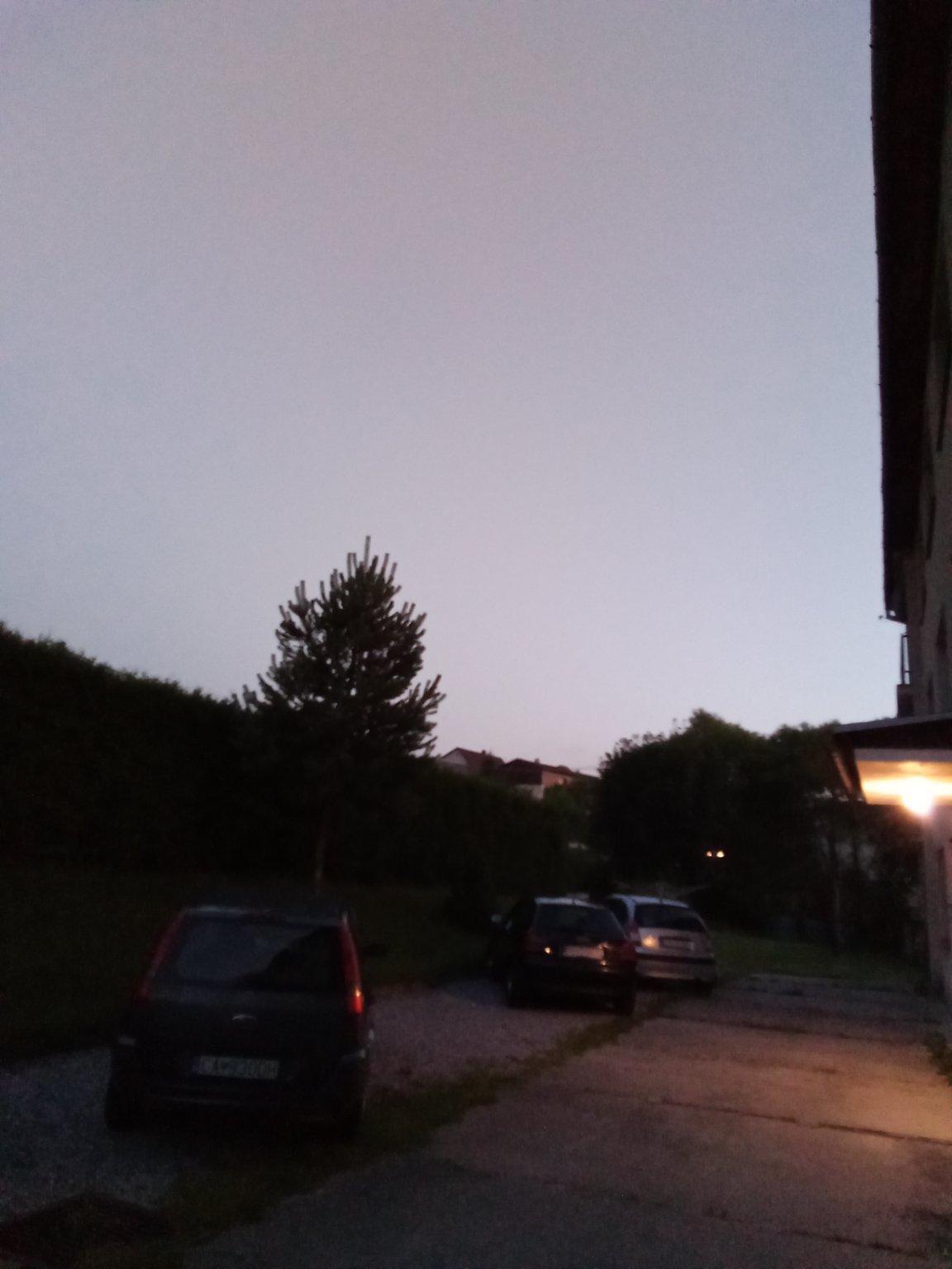 K večeru se úplně vyjasnilo. JV vítr 9 km/h, tlak 1020 hPa, vlhkost.47 %. Dnešní maximum 26,9 °C.
