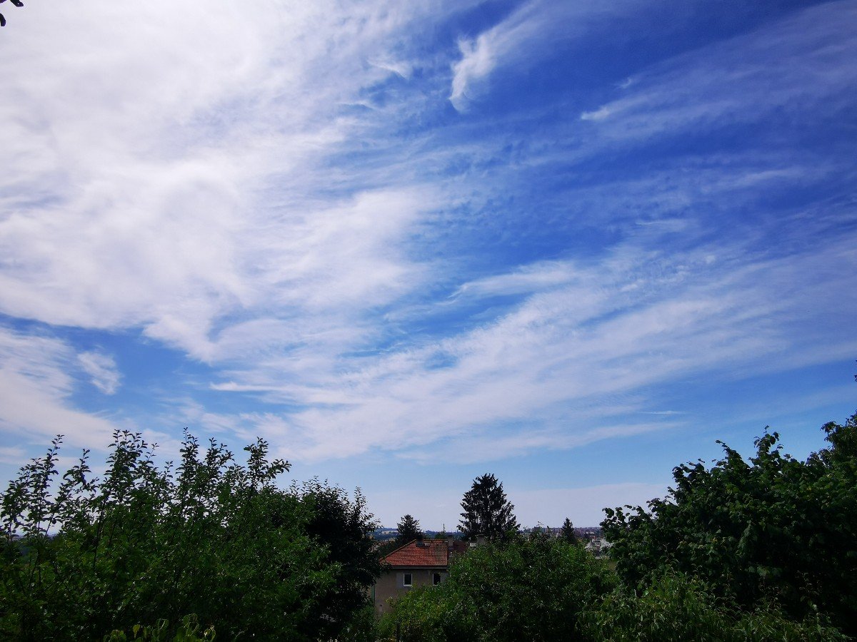 Jasno,slabý vítr, v lese prijemne, jinak dole horko. Pohled na Ostravici, v pozadí hora Smrk a Knehyne. Foceno z Medvědi skály.