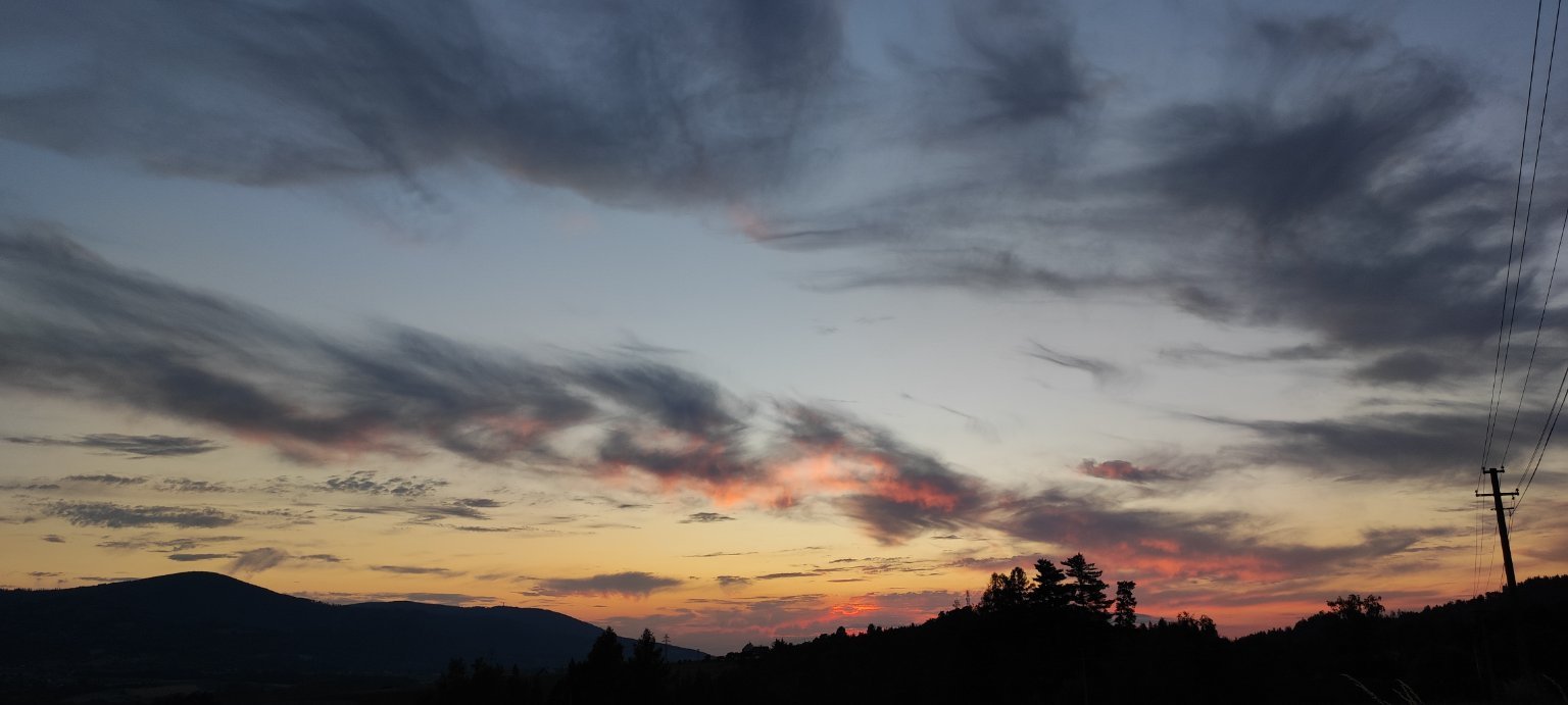 -°C, Polojasno až oblačno. Slunko zapadá za Cirry.