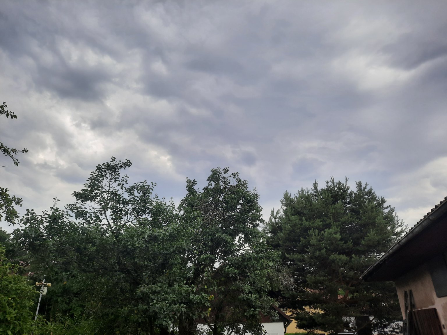 Je skoro jasno a vane mírný vítr. Na západě se objevují první kovadliny bouřek.