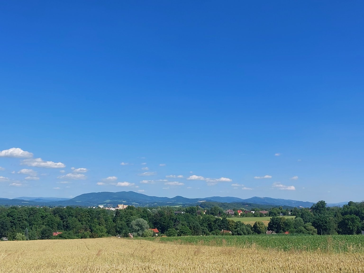 29,5°C. Teplo, fouká příjemný slabý až mírný proměnlivý větřík.