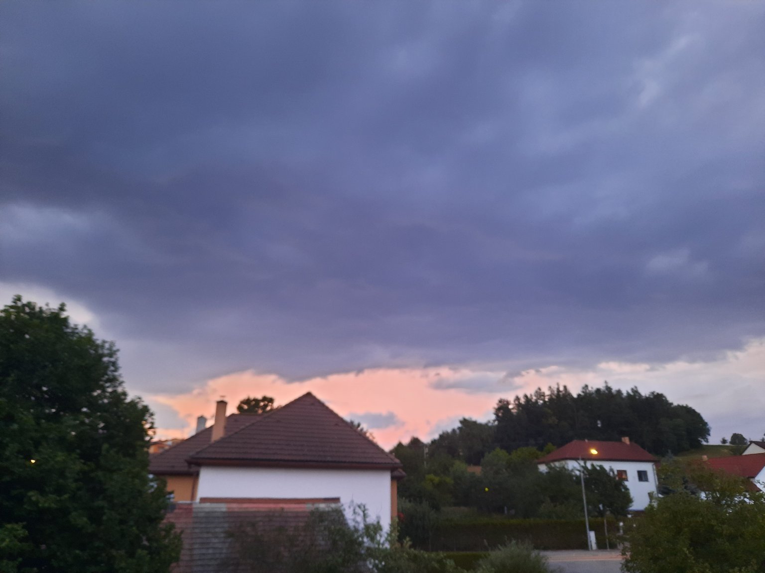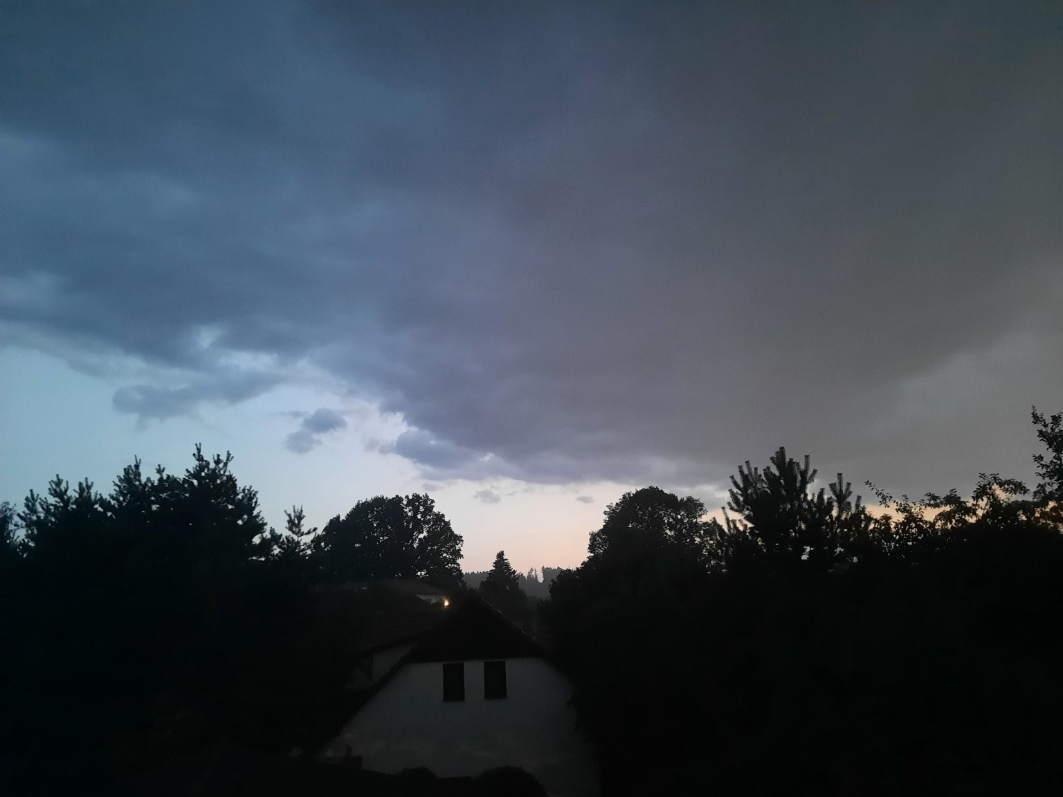 Čekal jsem vše, ale bouřku jsem opravdu nečekal, třikrát zadunělo, náraz 38 km/h. Teplota: 18.2°C, Vlhkost: 80%, Tlak: 1017 hPa (stoupá), Srážky(1hod): 1.8 mm.